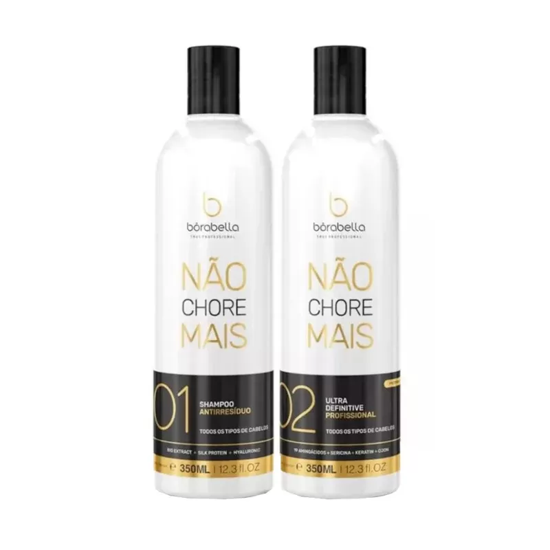O Borabella Kit Progressiva Não Chore Mais 350ml é um tratamento capilar inovador desenvolvido para proporcionar alisamento seguro e eficaz sem o uso de formol. Sua fórmula exclusiva combina ácido hialurônico, proteína da seda, 19 aminoácidos e óleos nutritivos como coco e ojon, que atuam em sinergia para hidratar profundamente, reduzir o frizz e devolver a maciez natural dos fios