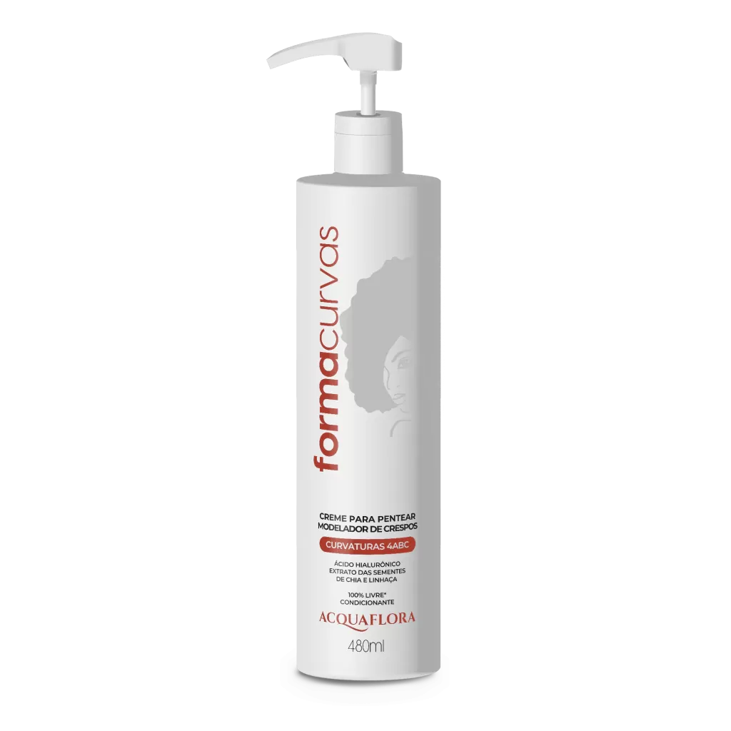 O Creme de Pentear Modelador Crespos Acquaflora Forma Curvas 480ml foi desenvolvido especialmente para cabelos com curvaturas 4ABC. Sua fórmula combina Ácido Hialurônico com extratos de sementes de chia e linhaça, promovendo hidratação profunda, definição natural e proteção térmica e solar. Ideal para uso diário, é livre de sal, parabenos, silicones e corantes, sendo compatível com técnicas Low Poo e No Poo.