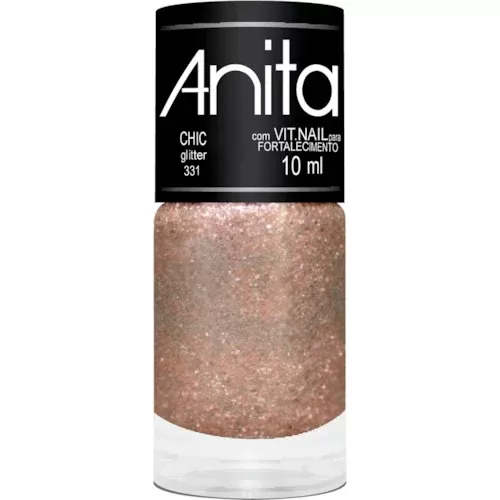 O Esmalte Anita Glitter Nº331 Chic 10ml é a escolha perfeita para quem deseja unhas com acabamento glamouroso e toque sofisticado. Com partículas finas de glitter em tons neutros e cintilantes, ele proporciona brilho elegante sem exageros. Sua fórmula é vegana, livre de parabenos e enriquecida com minerais que ajudam a fortalecer as unhas. A textura é leve, de fácil aplicação e secagem rápida. Ideal para ser usado sozinho ou como cobertura sobre esmaltes cremosos. Indicado para todos os tipos de unhas e ocasiões especiais.