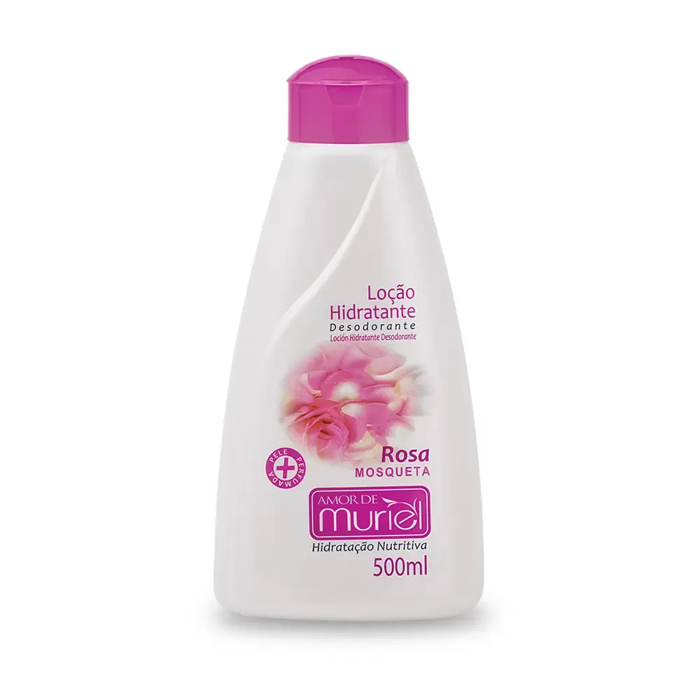 O Hidratante Corporal Amor de Muriel Rosa Mosqueta 500ml é uma loção hidratante com ação desodorante, desenvolvida para proporcionar hidratação intensa, nutrição profunda e regeneração da pele. Enriquecido com extrato de rosa mosqueta dos Andes chilenos, o produto melhora a textura da pele, deixando-a mais macia, iluminada e com toque saudável. Indicado para todos os tipos de pele, inclusive as mais sensíveis, sua fórmula é vegana, livre de crueldade animal e parabenos. A embalagem de 500ml é econômica e prática para uso diário.