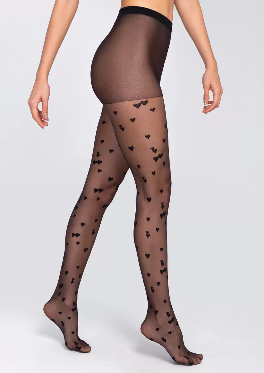 Meia-Calça Lupo Corações tamanho G leve transparência conforto preta