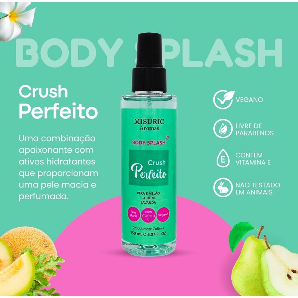 Misuric Body Splash Crush Perfeito 150ml fragrância refrescante feminina fixação prolongada