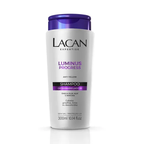 O Shampoo Lacan Luminus Progress Desamarelador 300ml é a escolha ideal para quem deseja manter os cabelos loiros, grisalhos ou descoloridos com tom vibrante e saudável. Sua fórmula líquida é enriquecida com pigmentos violeta que neutralizam os reflexos amarelados e alaranjados, enquanto ativos hidratantes restauram a maciez e o brilho dos fios. A embalagem prática de 300ml é perfeita para uso diário ou profissional. Indicado para adultos, o produto oferece textura leve, fragrância suave e resultados visíveis desde a primeira aplicação.