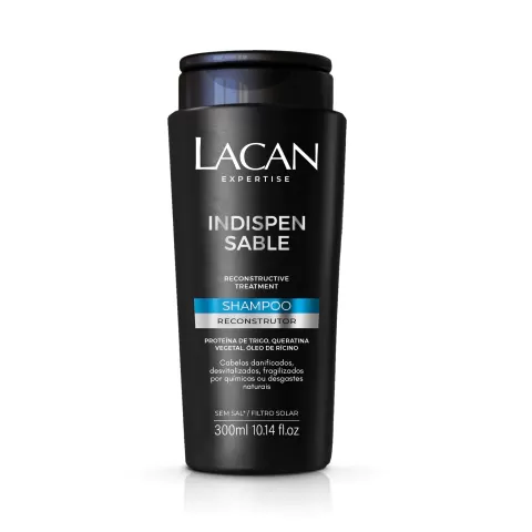 O Shampoo Reconstrutor Lacan Indispensable 300ml foi desenvolvido para tratar profundamente cabelos danificados por processos químicos, mecânicos ou desgastes naturais. Sua fórmula exclusiva promove reconstrução capilar, devolvendo força, resistência e brilho à fibra. Com textura leve e fragrância suave, proporciona limpeza eficaz sem agredir os fios. A embalagem prática de 300ml é ideal para uso diário e facilita o manuseio. Indicado para todos os tipos de cabelo, especialmente os fragilizados, este shampoo protege contra o calor de secadores e pranchas, evitando pontas duplas e ressecamento.